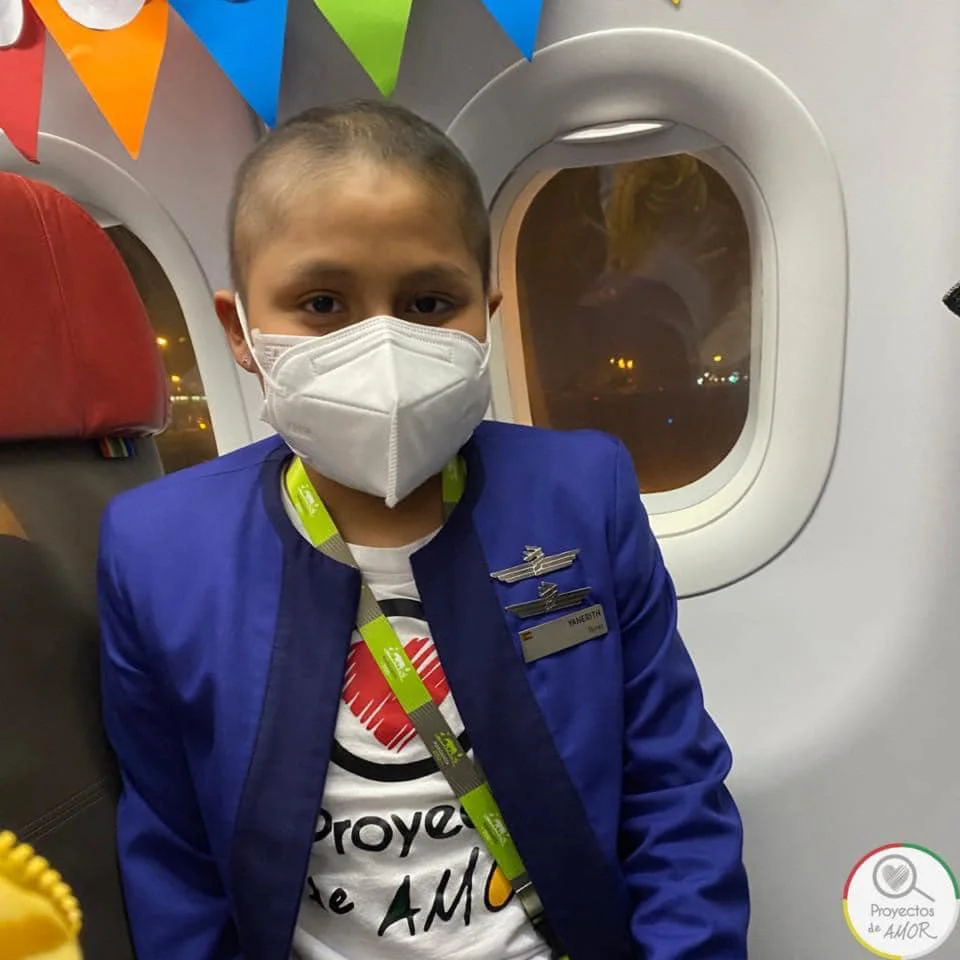 Mil gracias a una de las tripulantes por regalarle parte de su uniforme, su saco. Yadira no paraba de sonreír y más aún cuando al finalizar el vuelo el piloto le regaló su gorra. Yadira estaba completamente fascinada y el equipo de voluntarias al borde de las lagrimas, gracias, gracias, gracias. Miles de bendiciones también a ese pasajero incógnito que le mandó un lindo sobre a Yadira, quedamos fascinadas con el detalle. ![]()